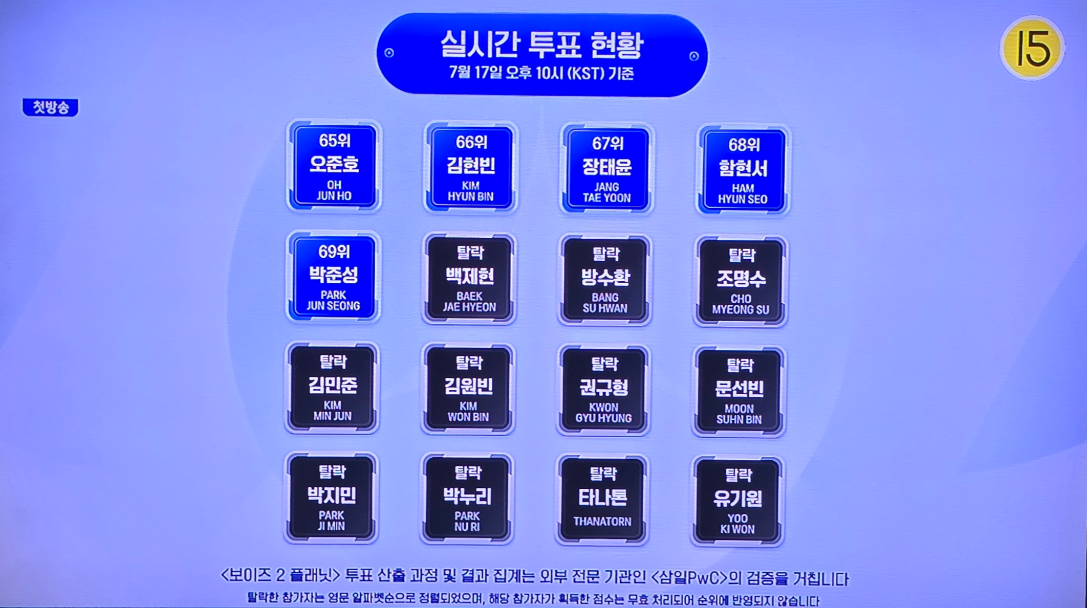 1위부터 69위, 그리고 탈락자들까지 전체 정리!