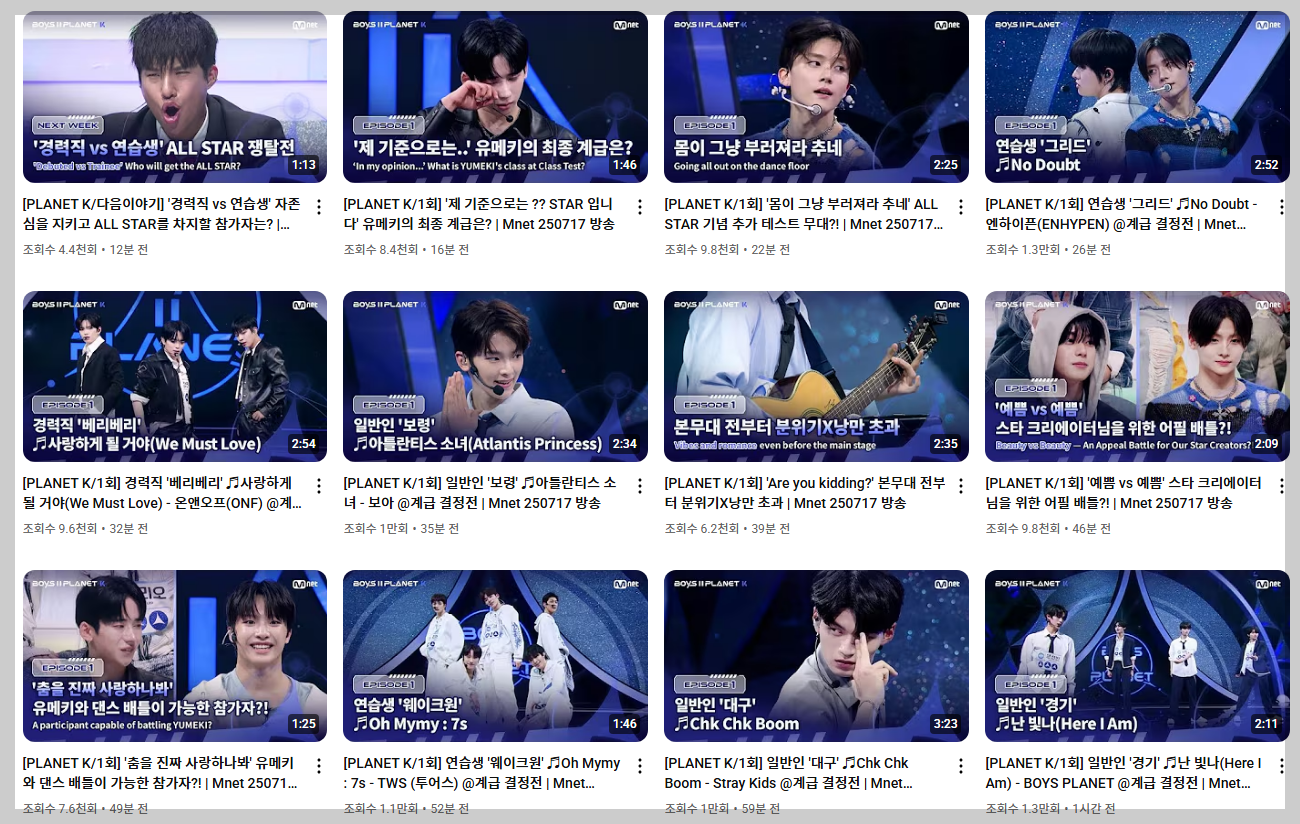 드디어 기다리고 기다리던 보이즈플래닛2 한국팀의 무대가 공개되었어요.어떤 연습생이 나오는지는 이미 블라인드 투표를 통해 공개가 되었던 만큼 첫방에서는 주목하는 멤버들 찾기에 중점을