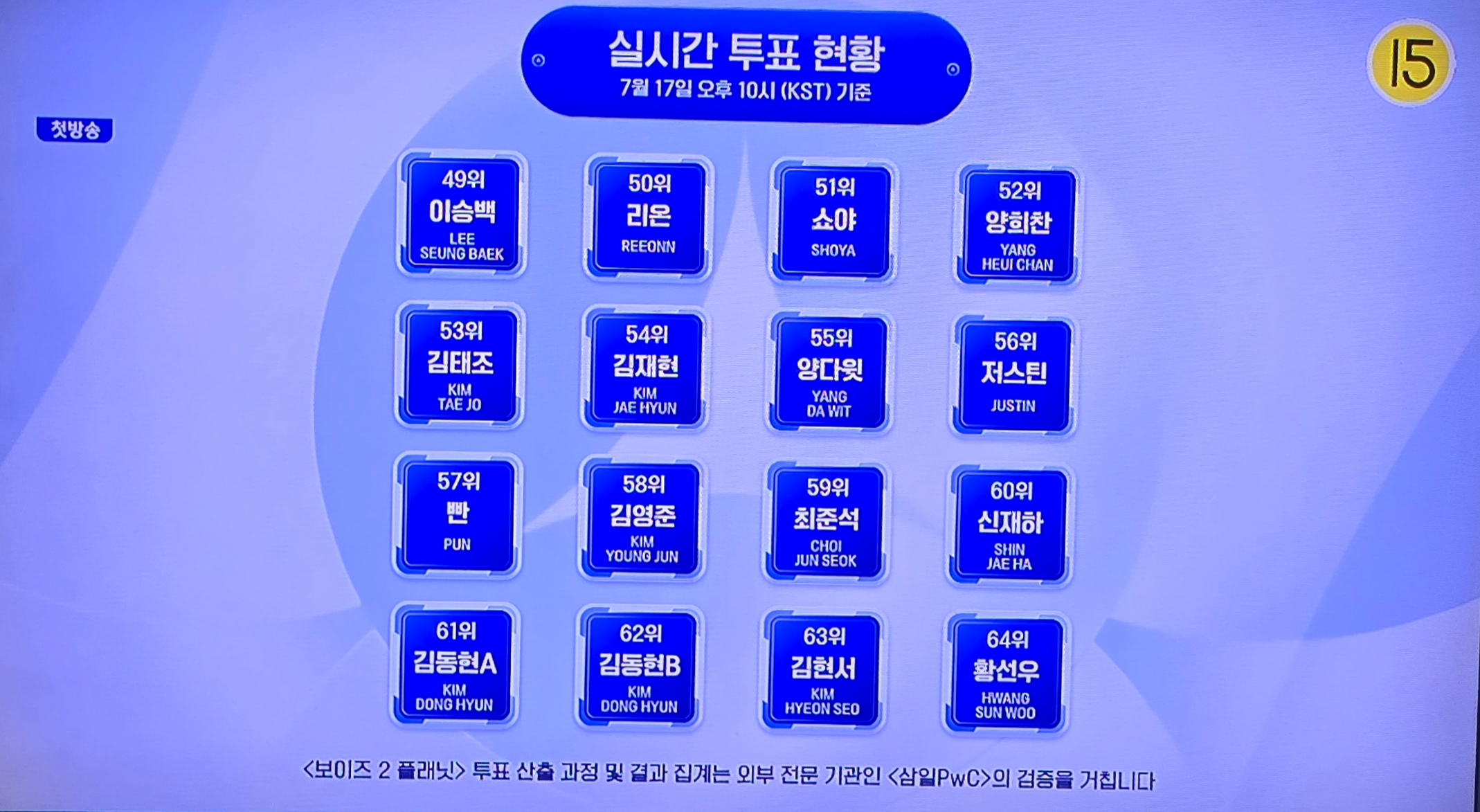 마지막에 깜짝 공개된 ‘시청자 투표 기반 1차 순위’!!!!!