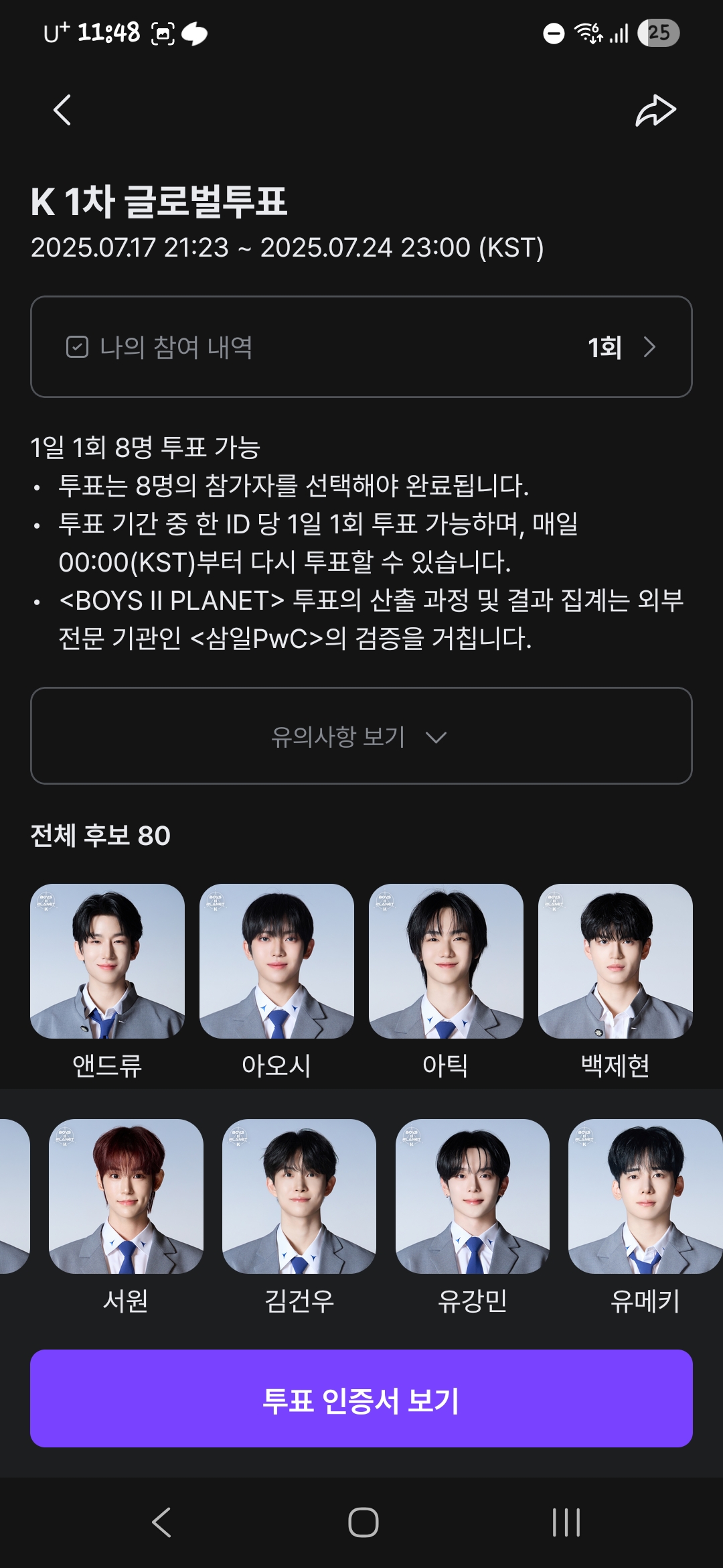 투표는 7월 17일부터 7월 24일까지 딱 일주일간 진행되고 있어요!